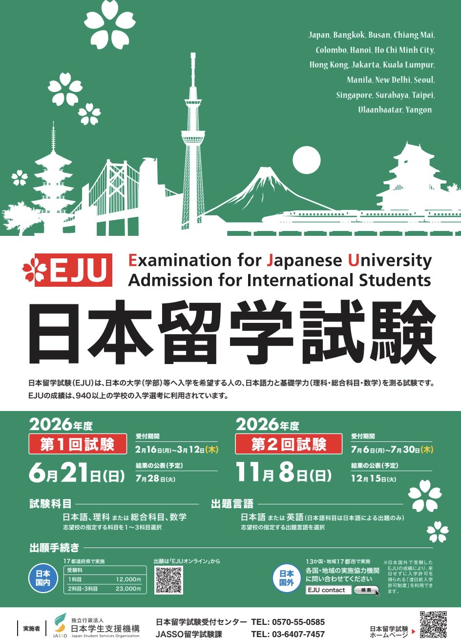 EJU гэдэг нь Япон улсын их, дээд сургууль (факультет)-д элсэн суралцах хүсэлтэй гадаад, монгол иргэдийн япон хэлний мэдлэг болон үндсэн мэдлэгийг шалгадаг шалгалт юм. Япон улсын 900 гаруй их, дээд сургууль, мэргэжлийн их, дээд сургууль, коллеж, магистрын хөтөлбөр, аспирантур, технологийн коллеж, мэргэжлийн сургуулиуд тус шалгалтын дүнг гадаад оюутан элсүүлэх шалгуур үзүүлэлтдээ шаарддаг. Уг шалгалтын онцлог нь Монголд өгч тэнцсэн шалгалтын дүнгээр Япон улсын зарим их, дээд сургуульд шууд элсэх боломжийг олгож байгаад оршино.